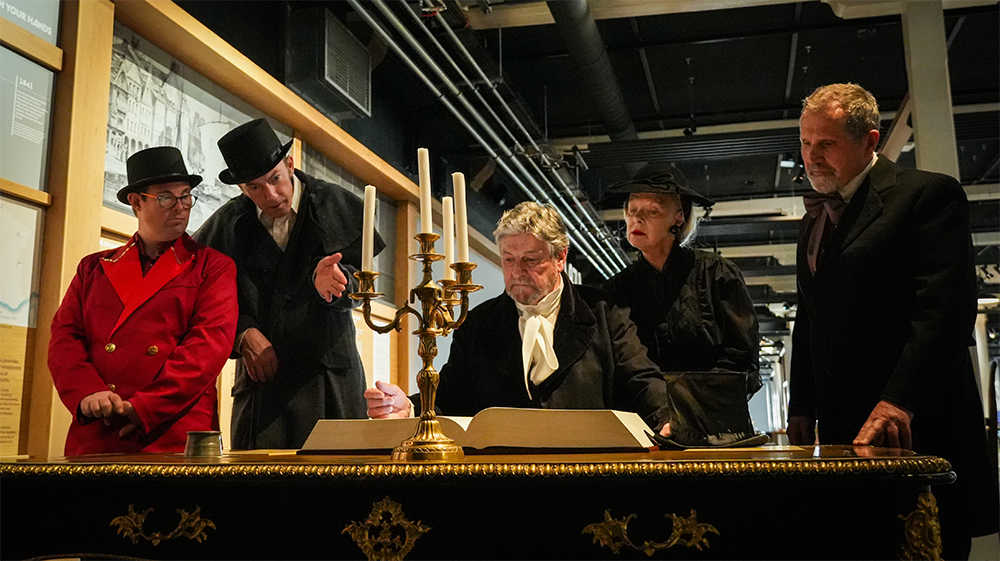 Tout au long de la soirée, les comédiens du Théâtre de la Corniche investissent les espaces de visite avec des extraits du spectacle Nouveau départ, voyage dans les arches du temps. Ils font surgir des personnages drôles et inattendus.